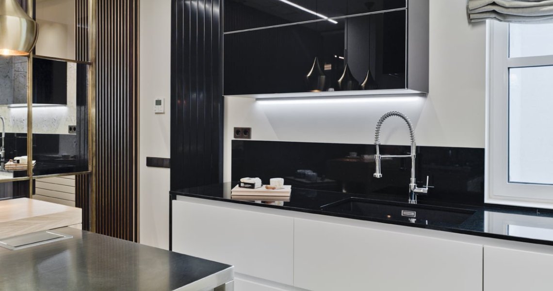 ENCIMERA GRANITO NEGRO INTENSO Y ACERO SATINADO