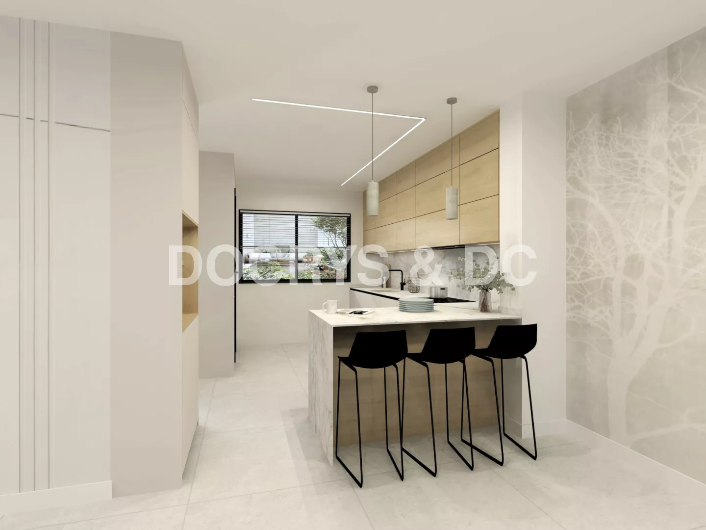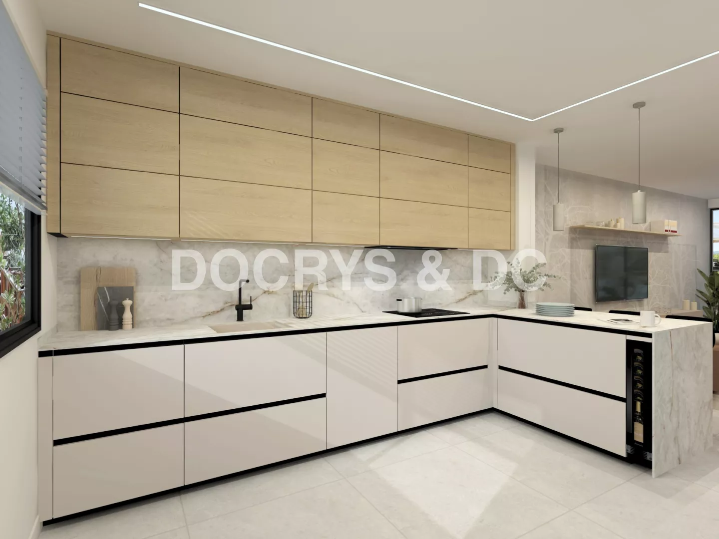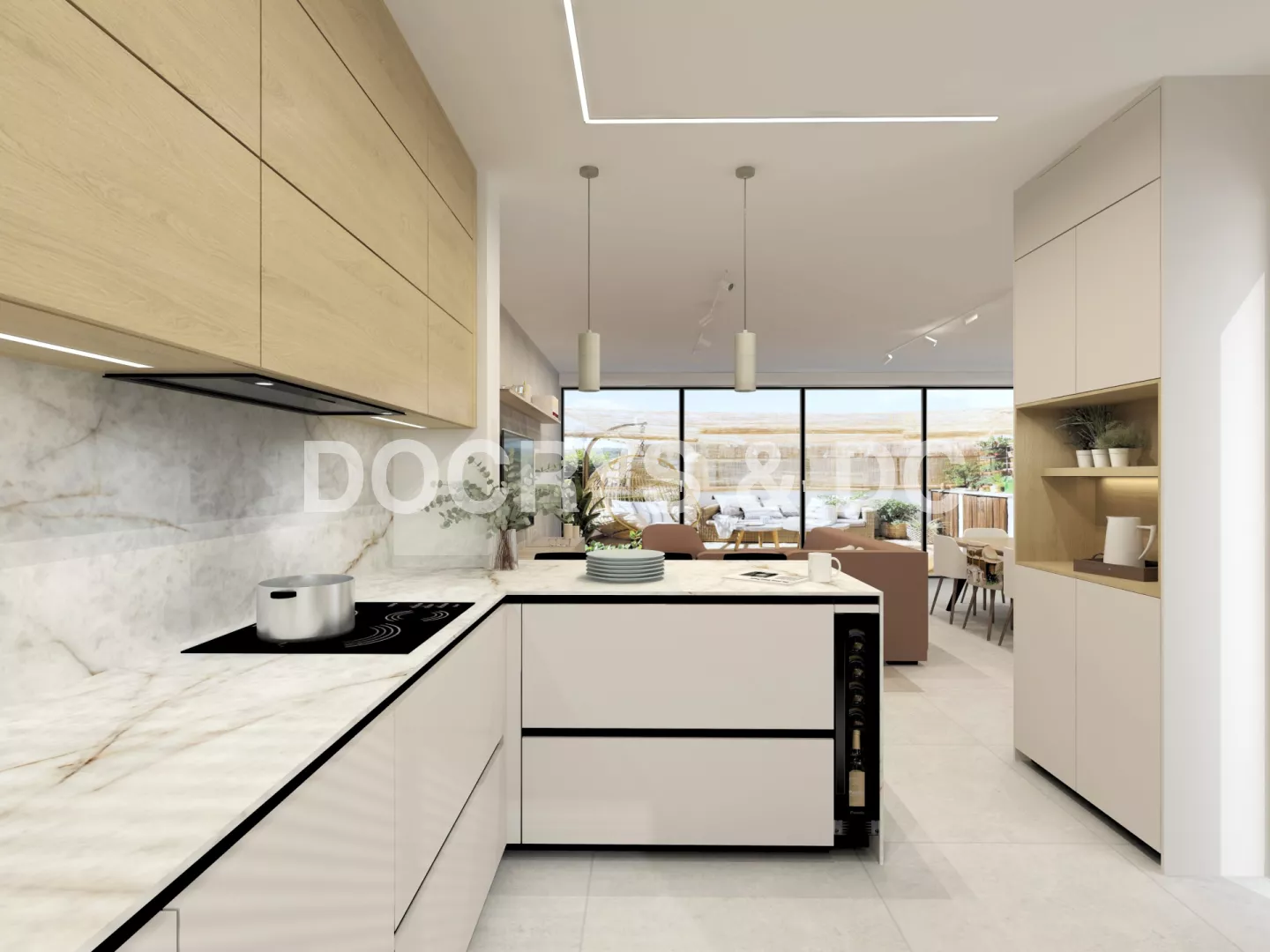 Esta cocina contemporánea cálida se concibe como un espacio abierto, luminoso y pensado para compartir. Desde el primer vistazo transmite calma, equilibrio y una sensación de hogar muy natural. La combinación de tonos suaves, madera clara y superficies de inspiración pétrea crea un ambiente acogedor, donde todo invita a quedarse y disfrutar del día a día.