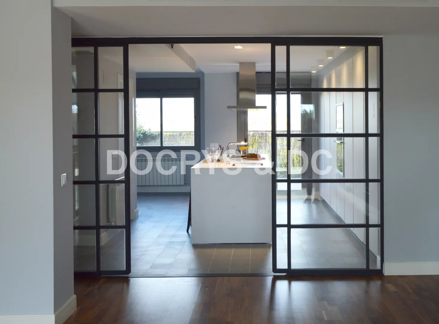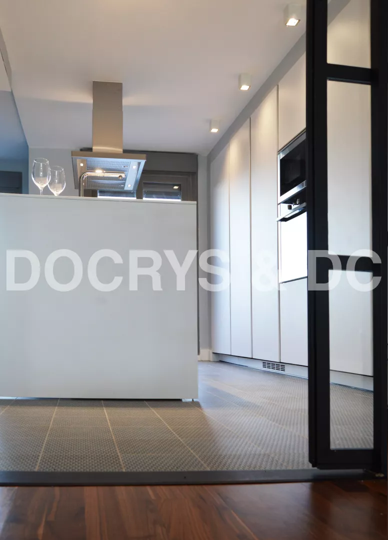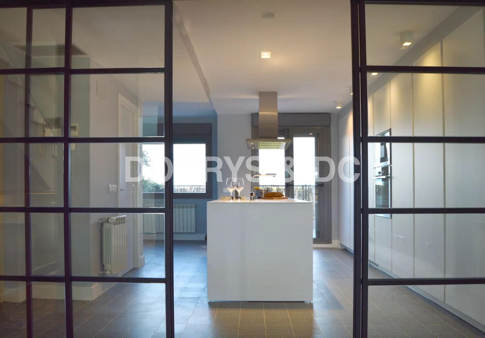 La libertad de movimiento, la posibilidad de compartir tareas sin agobios y de socializar hacen que podamos disfrutar plenamente del corazón de nuestro hogar. Su suelo porcelánico de detalles geométricos se fusiona a la perfección con el resto del conjunto, aportando una nota de color y contraste en la estancia. Lo mismo ocurre con sus espectaculares cerramientos de hierro y cristal que resultan idóneos para delimitar ambos ambientes de una forma elegante, sencilla y con cierto toque industrial.