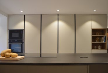 Cocina Santos cashmere en paralelo con encimera porcelánica